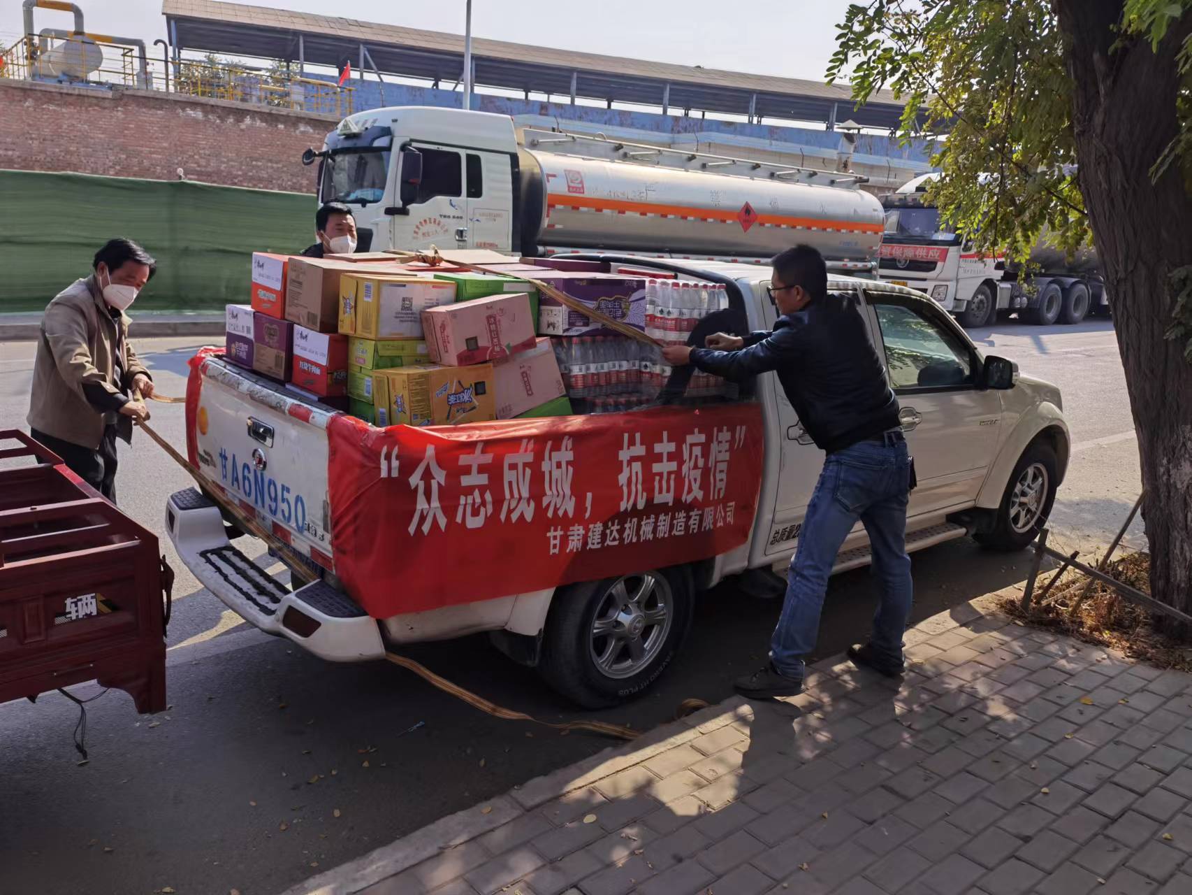 為不影響工作人員的工作,中午過后,我公司將這滿車的愛心物資送到工作人員手上,感謝他們為抗疫工作所付出的辛勤努力和無私奉獻。